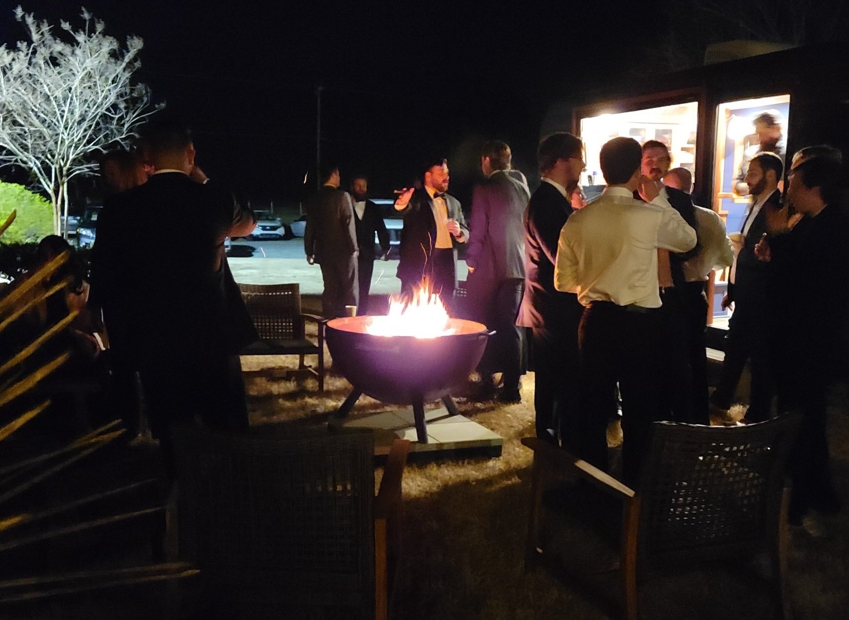 You will always get Matt and me, as the only way to be sure that all is done the way we would do it is to, well… do it ourselves! We will set up our custom base, which protects any surface that we place the firepit upon, get the fire blazing, maintain it throughout your event, and clean up at the event’s end. All you need to do is enjoy! We use only seasoned hardwoods, which reduces smoke and sparks. We also include camp chairs and cornhole boards if you feel that they would fit the vibe of your event.