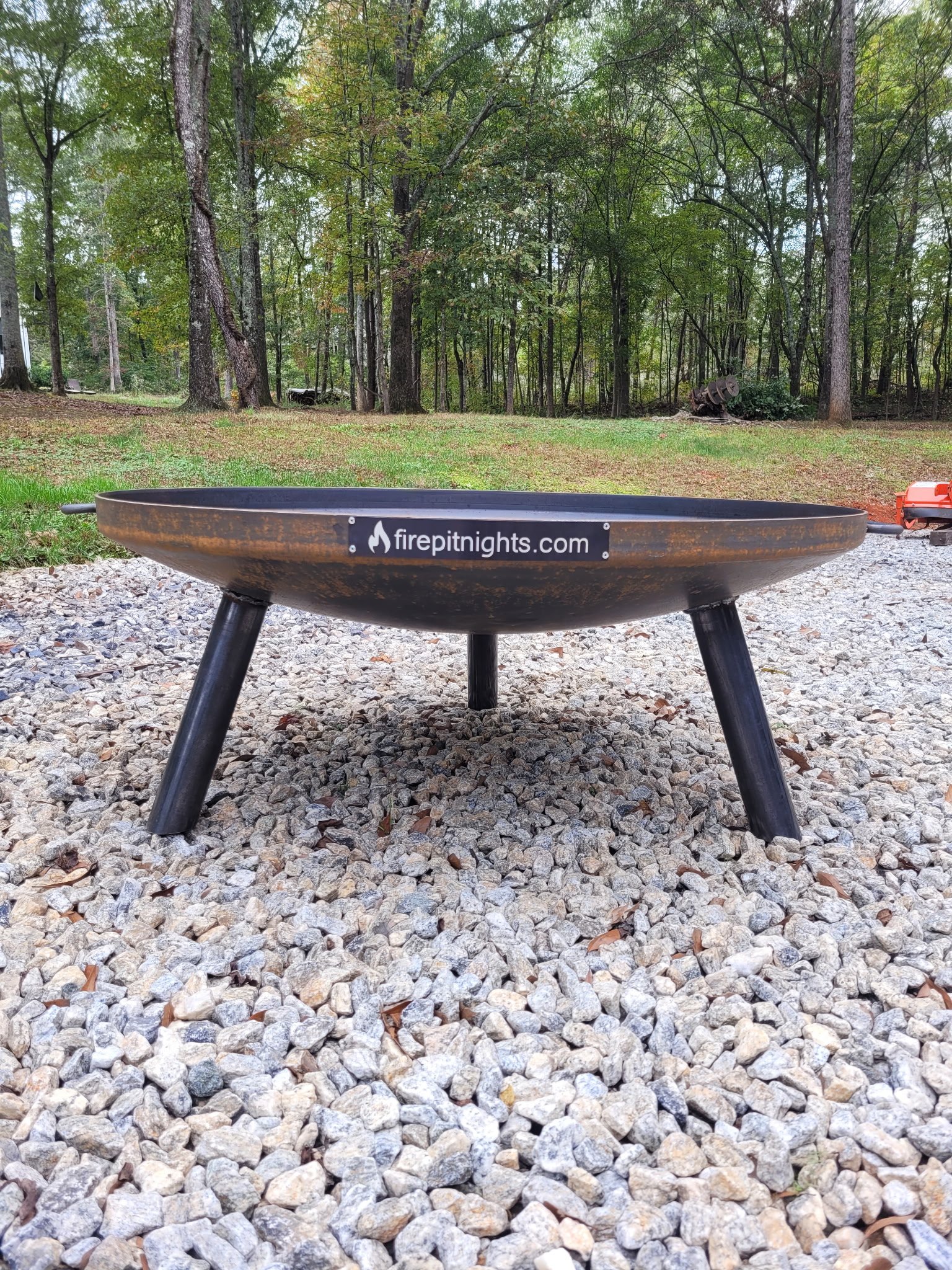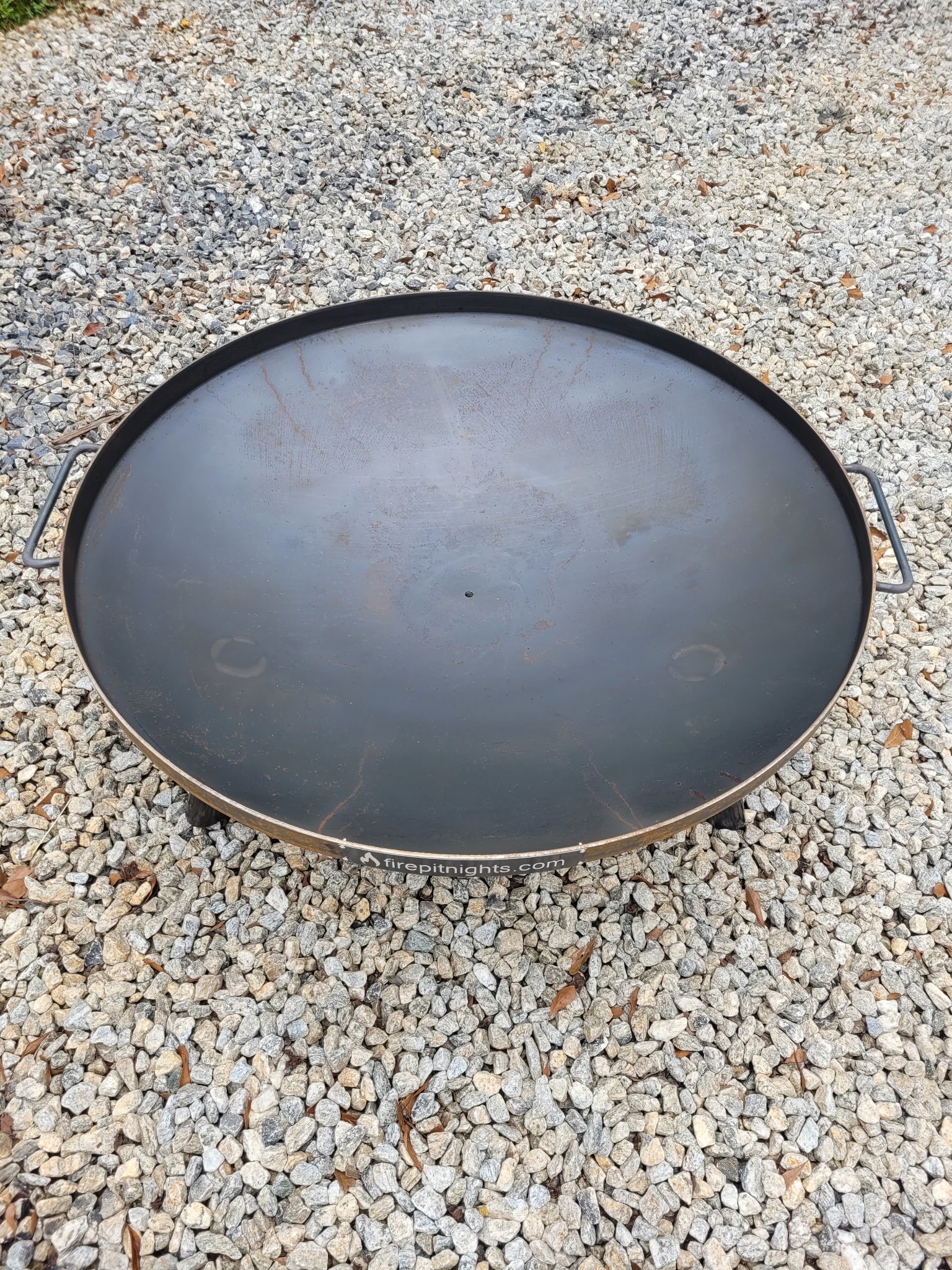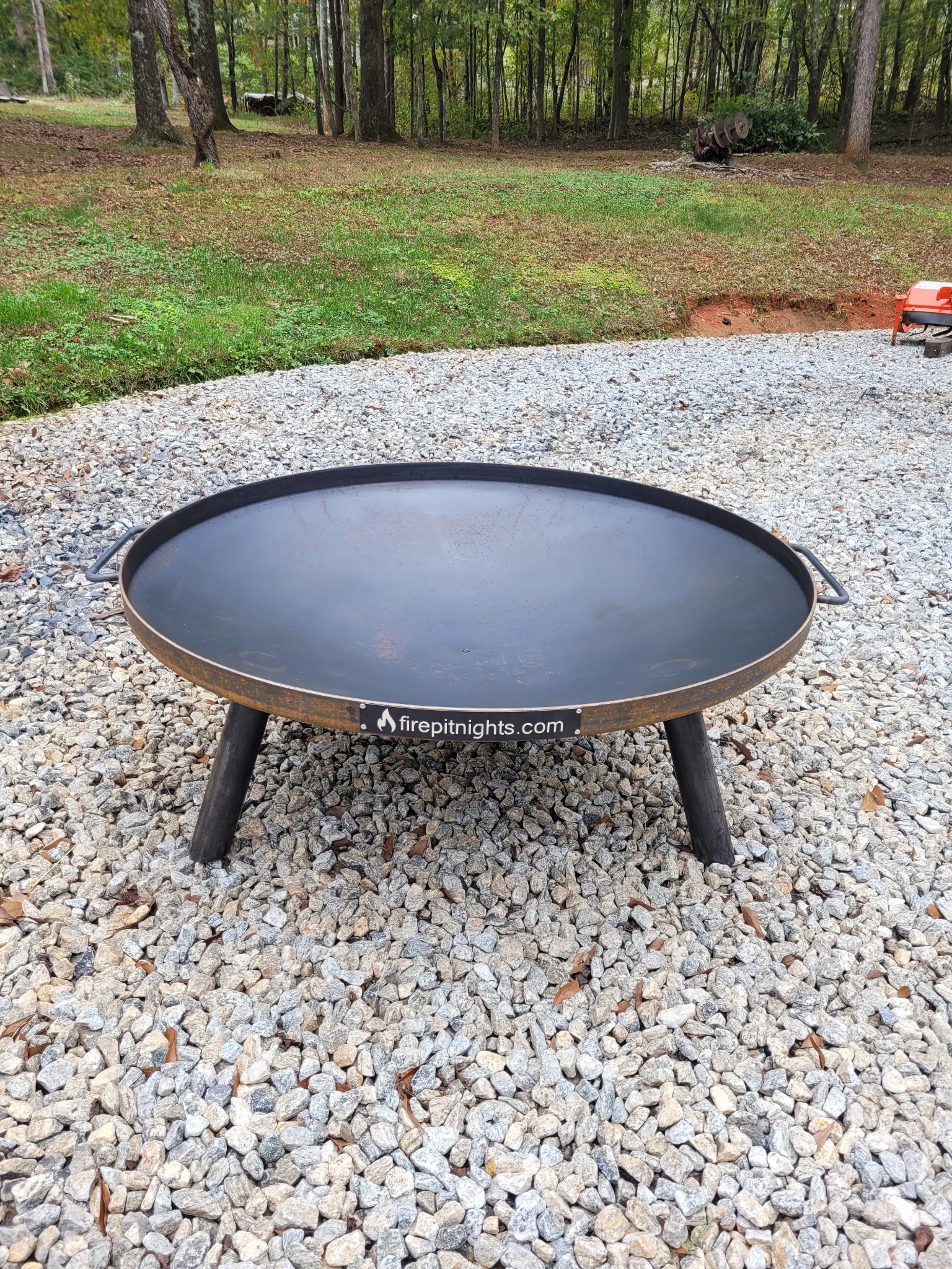 Unique, and sleek! The shape of this firepit, like our 48″ PAN, lends itself to a more modern aesthetic. With a bowl that is only 7″ deep, your fire is put on display like in no other firepit. 42″ gives you plenty of room for a sizable fire, and the pan shape allows you to see every bit of it, as well as slide those feet underneath to keep them warm.