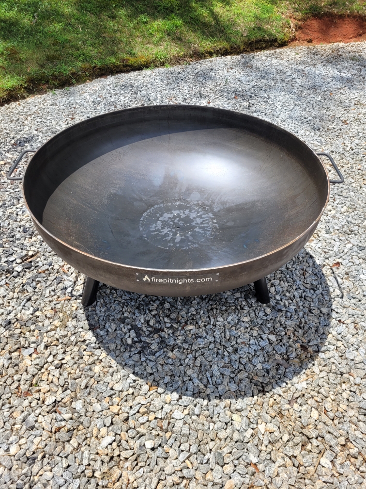 When we get: “What is your biggest firepit?” This is the answer. At 48″ in diameter with a 14″ deep bowl, the top rim of this big guy sits at 25″ off the ground. The sidewall is a full 1/4″ thick, and he weighs in at just over 200 pounds! So if you are “go big or go home” folks, this one’s for you!