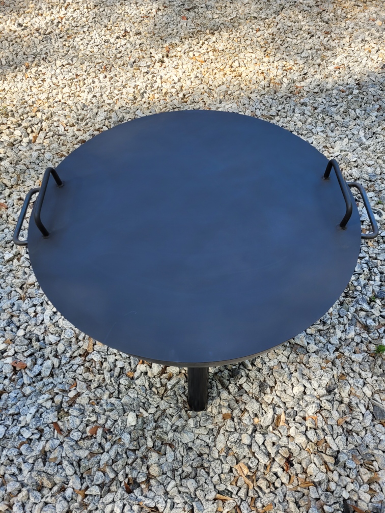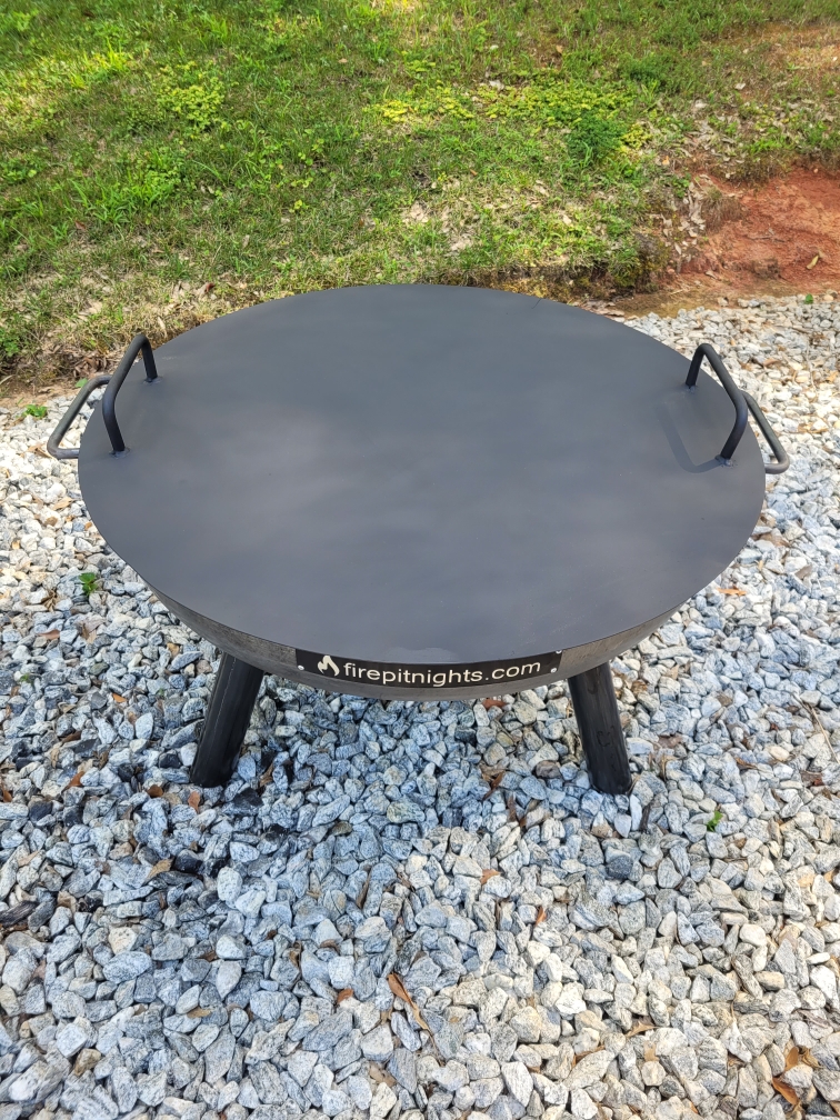 Double-handled steel snuffer lids sized to fit your firepit. The 14-gauge steel is the perfect balance of strength and weight to allow for these to be easily put in place and removed. The steel finish will patina in time without losing integrity, just like your firepit.